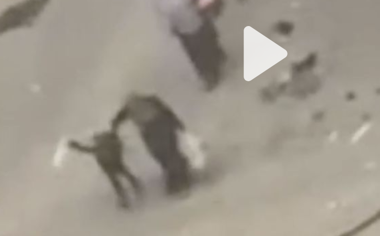 eine Palästinenserin (ältere Dame, Großmutter flieht, sie ist unbewaffnet. Ihr ganzes Habe ist in eine Plastiktüte verpackt, denn Gaza City wird zur Zeít von von der israelischen Armee bombardiert, vielleicht einer Terroristenbande, einer Mörderorganisation oder etwas ähnliches. Die